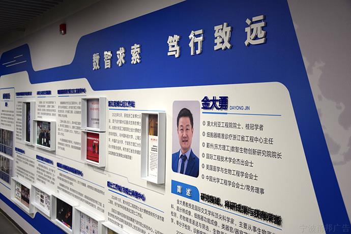 鄞州(东方理工)数智生物创新研究院位于鄞州孵化园里,距离南部商务区非常的近,在承接了他们首届年度活动之后我们甬邦广告公司又为该公司进行了这次的企业文化墙的制作安装服务。